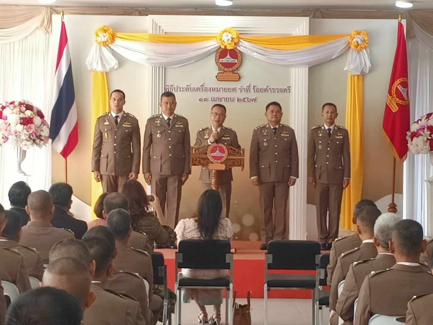 ประธานในพิธีประดับเครื่องหมายยศ ร.ต.ต. ให้ แก่ข้าราชการตำรวจในสังกัดที่สำเร็จการฝึกอบรมหลักสูตรการฝึกอบรม
