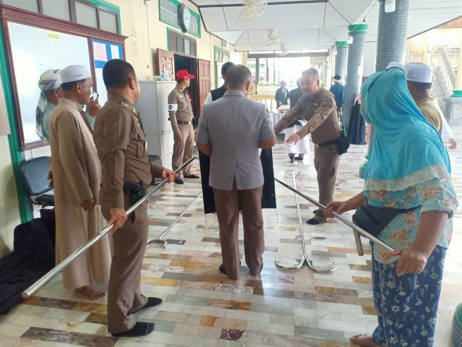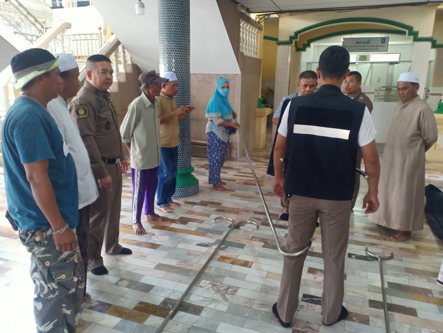 ถ่ายทอดความรู้การใช้ไม้ง่ามระงับเหตุคลุ้มคลั่งในชุมชนเพื่อบรรเทาความรุนแรง เเละตรวจเยี่ยมรับฟังปัญหาของชุมชน