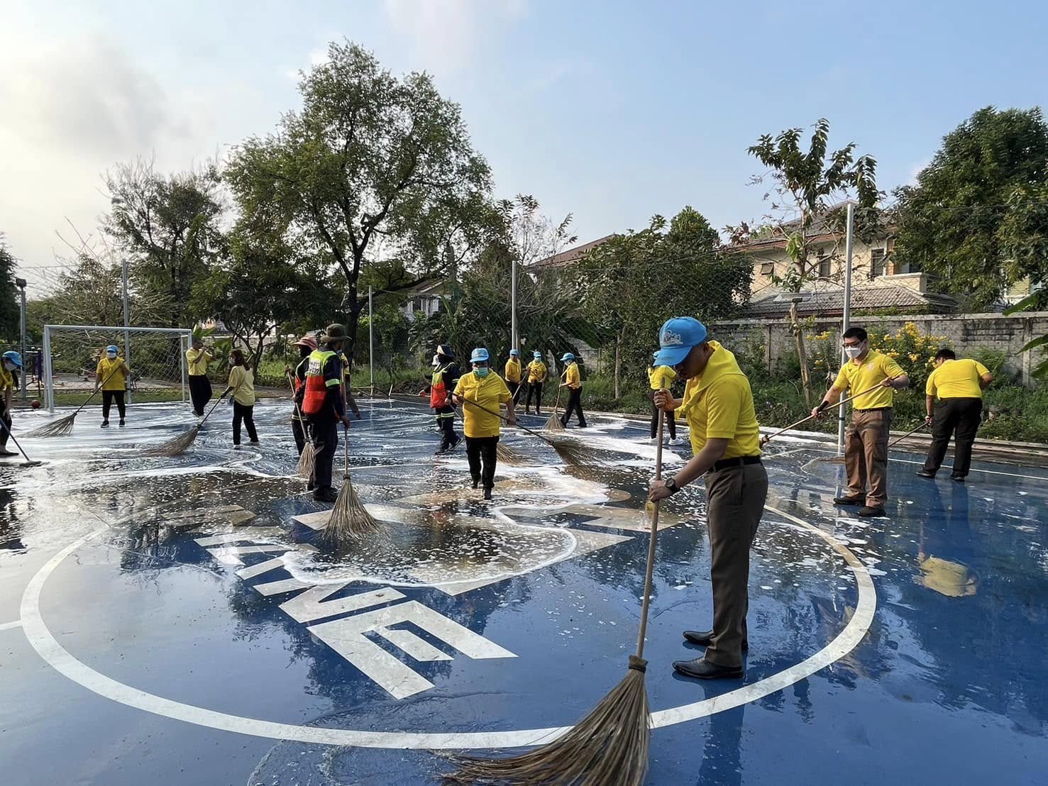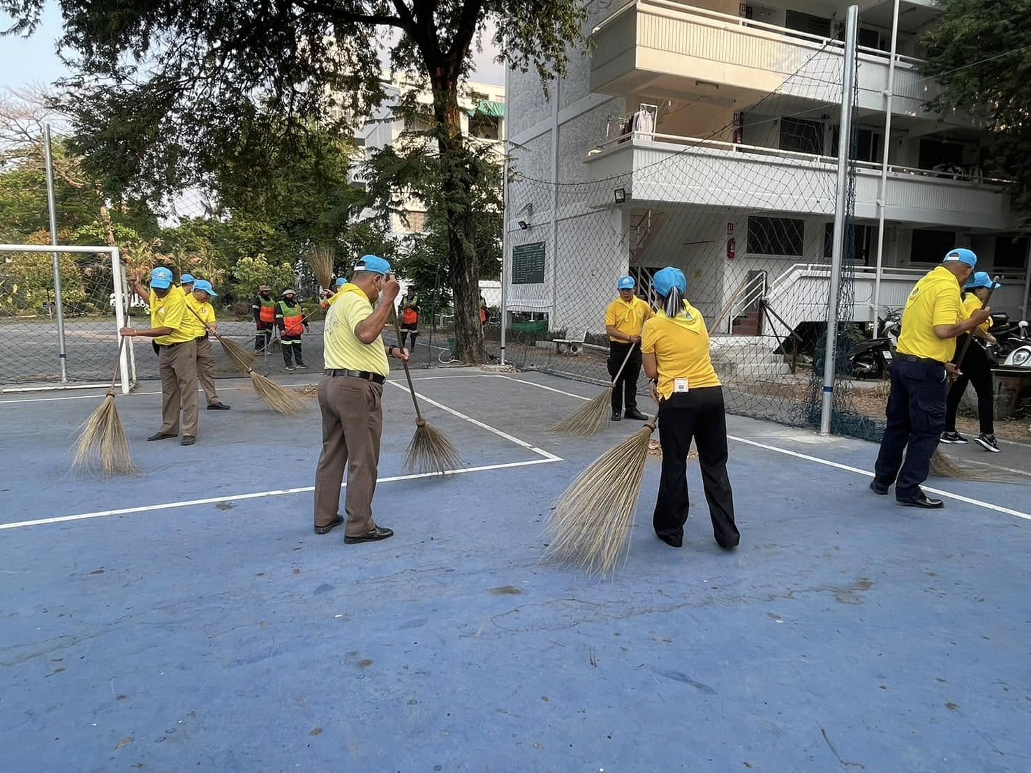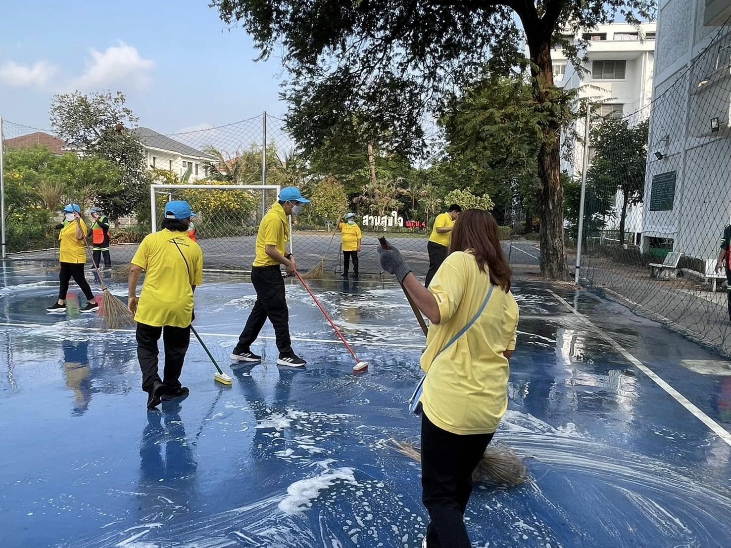 จัดกิจกรรมจิตอาสาพัฒนาทำความสะอาด ปรับปรุงสนามฟุตซอล ทำความสะอาดพื้นสนาม ติดตั้งตาข่าย ส่งมอบลูกฟุตซอล และพื้นที่โดยรอบบริเวณแฟลตข้าราชการตำรวจ สถานีตำรวจนครบาลบางชัน เพื่อให้ข้าราชการและประชาชนได้ใช้พื้นที่ในการออกกำลังกายและทำกิจกรรม