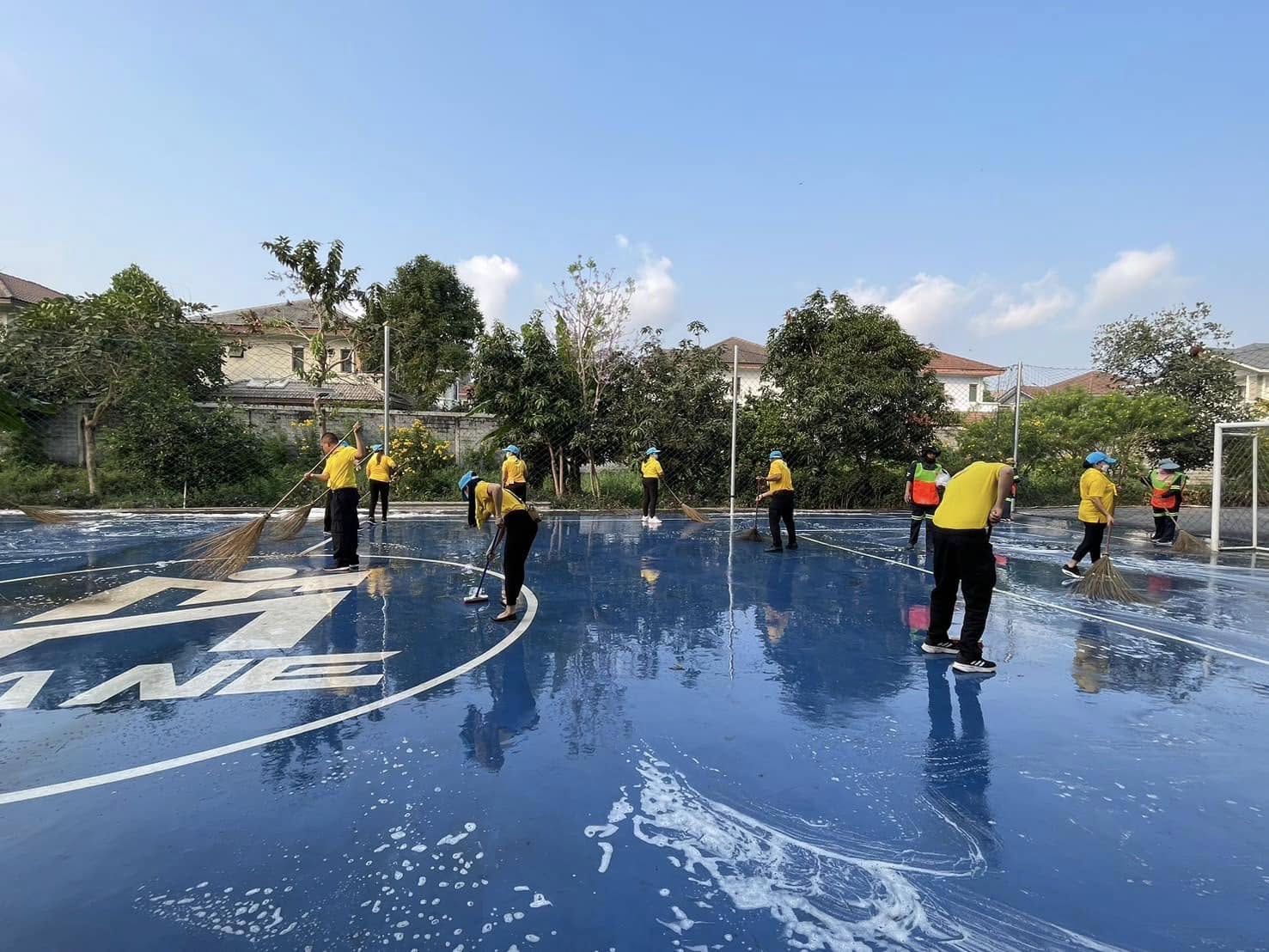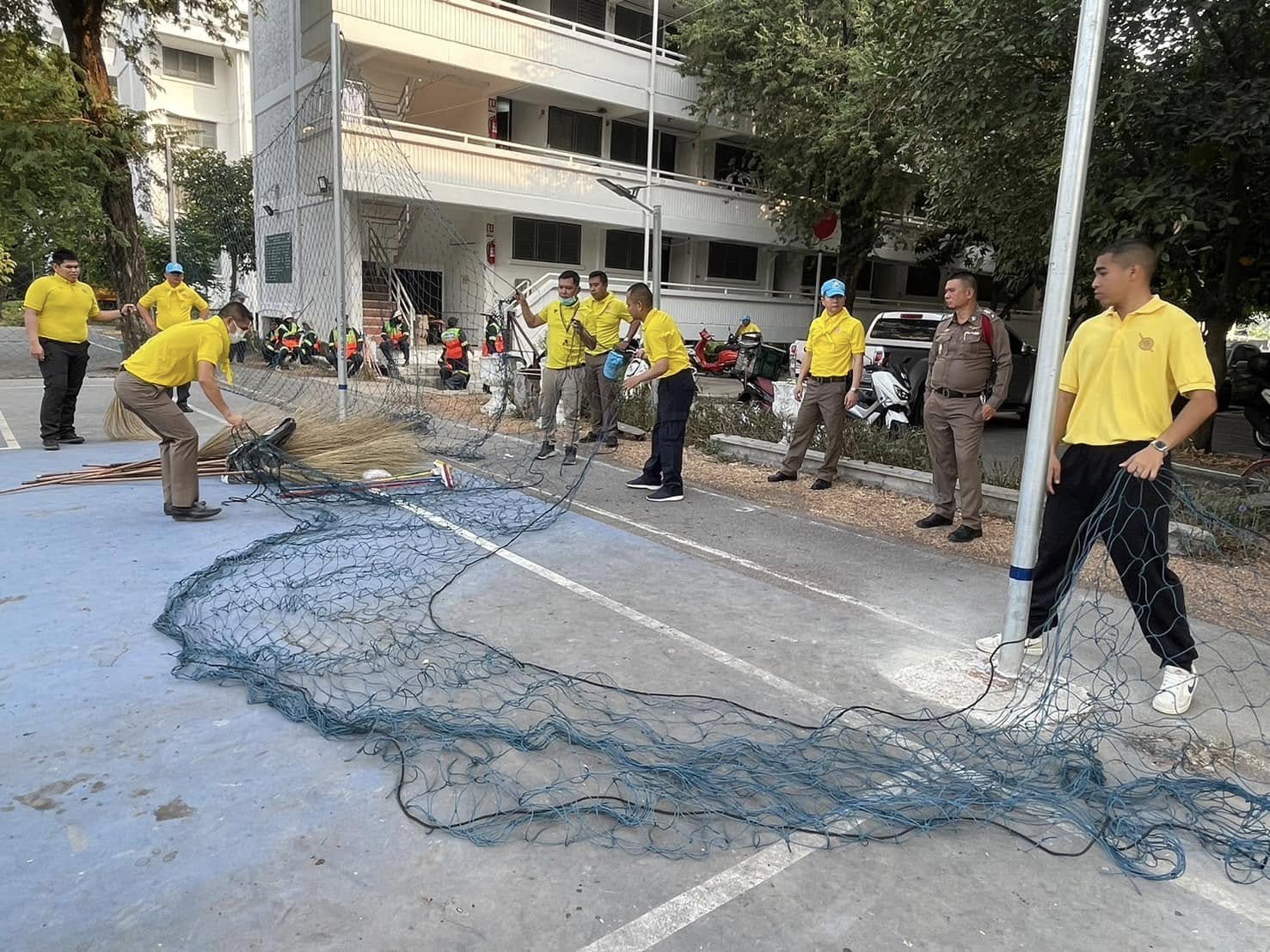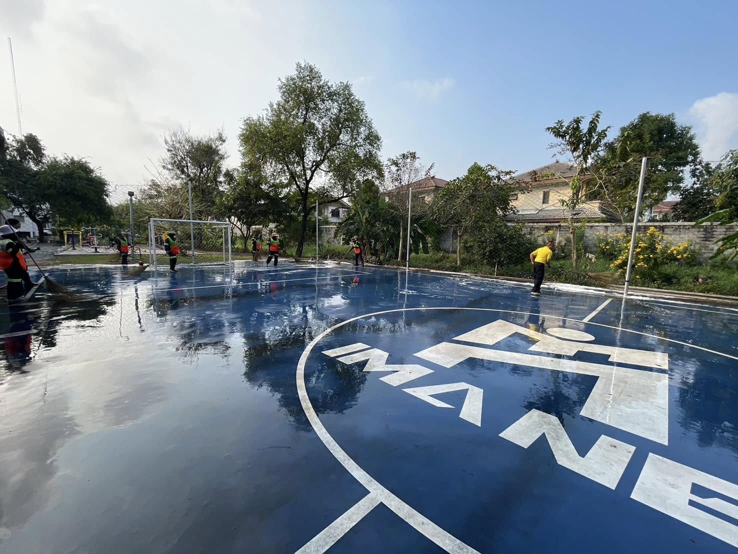 จัดกิจกรรมจิตอาสาพัฒนาทำความสะอาด ปรับปรุงสนามฟุตซอล ทำความสะอาดพื้นสนาม ติดตั้งตาข่าย ส่งมอบลูกฟุตซอล และพื้นที่โดยรอบบริเวณแฟลตข้าราชการตำรวจ สถานีตำรวจนครบาลบางชัน เพื่อให้ข้าราชการและประชาชนได้ใช้พื้นที่ในการออกกำลังกายและทำกิจกรรม