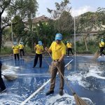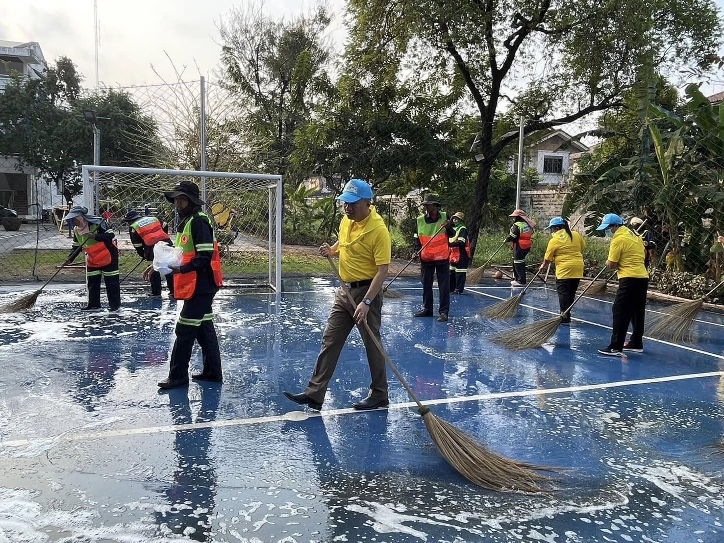 จัดกิจกรรมจิตอาสาพัฒนาทำความสะอาด ปรับปรุงสนามฟุตซอล ทำความสะอาดพื้นสนาม ติดตั้งตาข่าย ส่งมอบลูกฟุตซอล และพื้นที่โดยรอบบริเวณแฟลตข้าราชการตำรวจ สถานีตำรวจนครบาลบางชัน