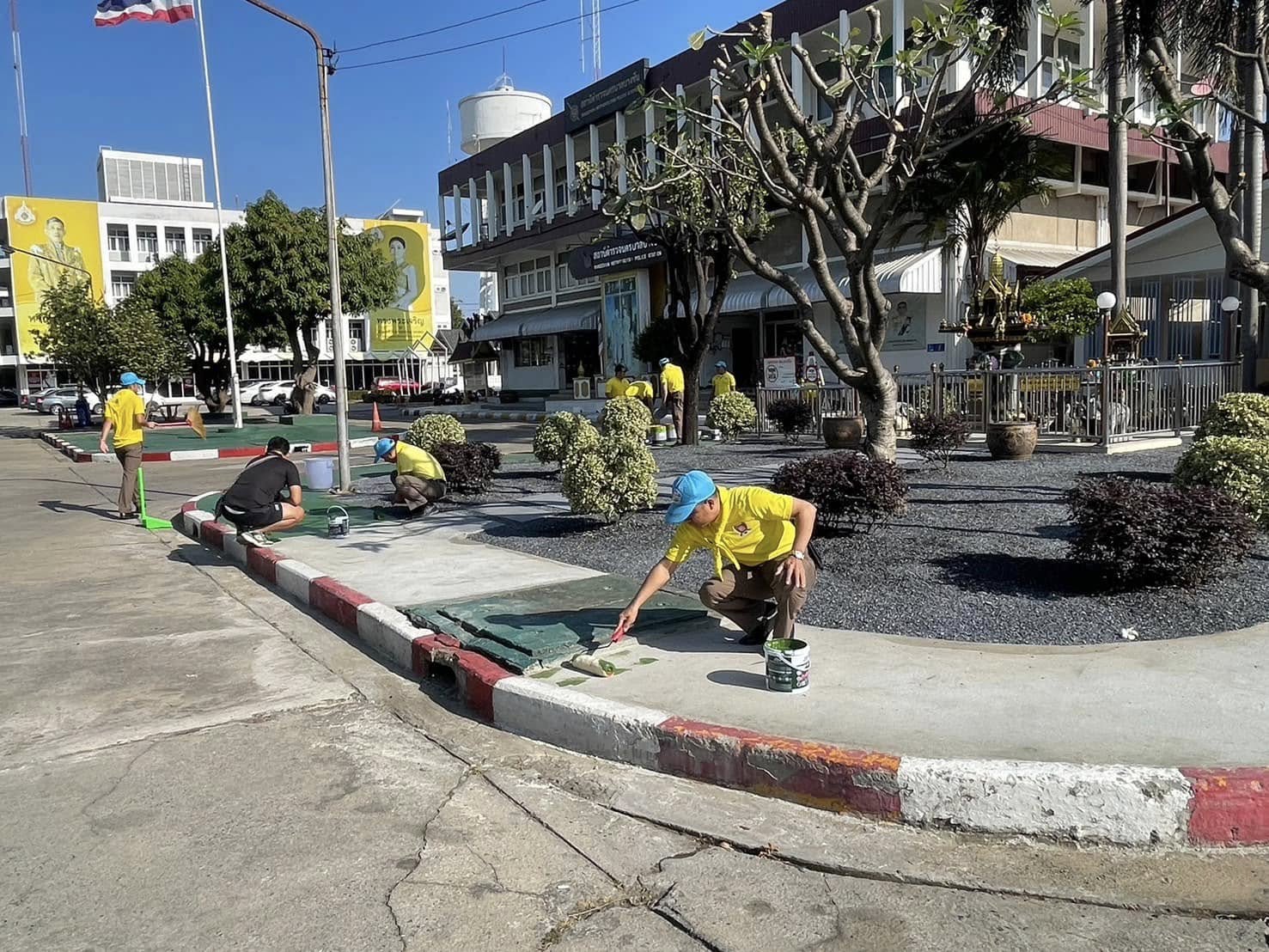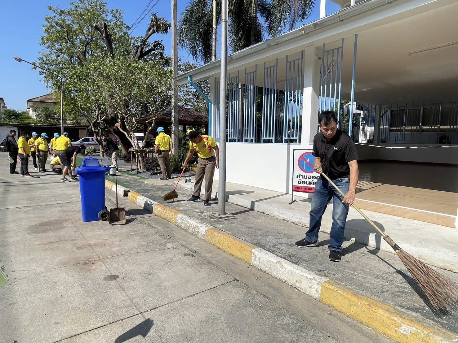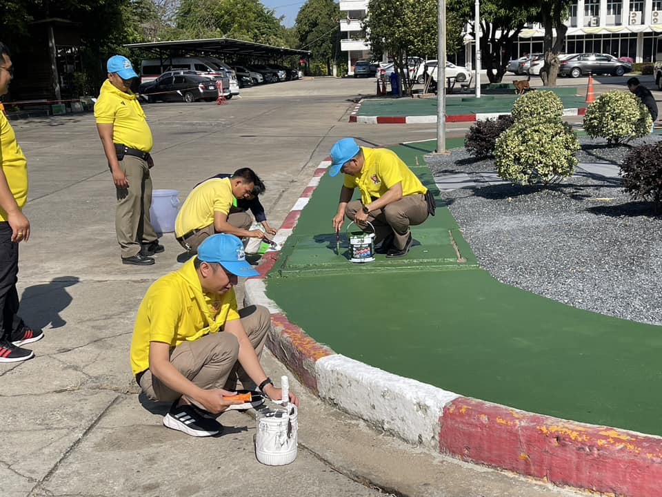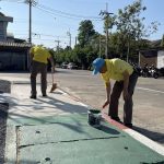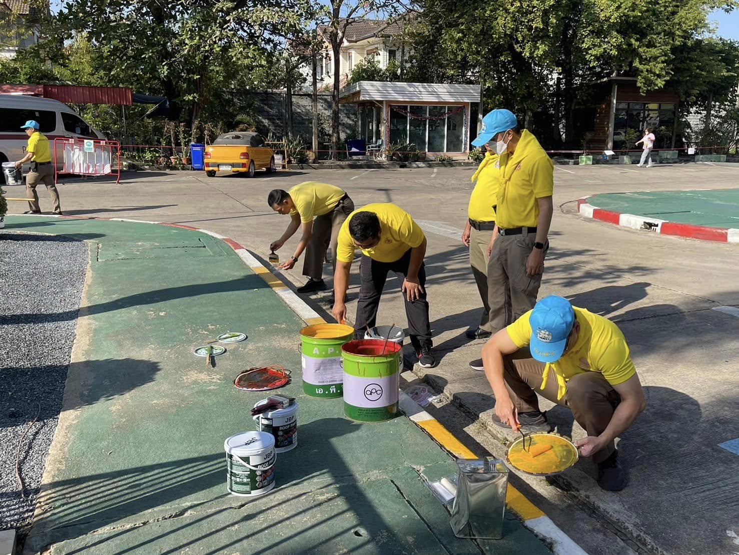 จัดกิจกรรมจิตอาสาพัฒนาทำความสะอาด กวาดพื้นถนน ฟุตบาท ทาสีเส้นขอบทางจราจร และฟุตบาทบริเวณลานหน้าสถานีตำรวจนครบาลบางชัน