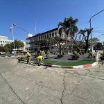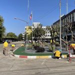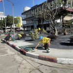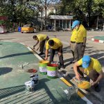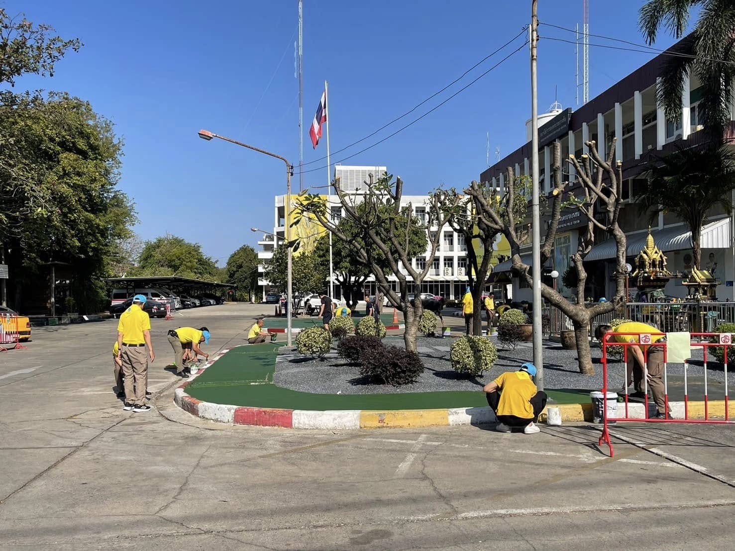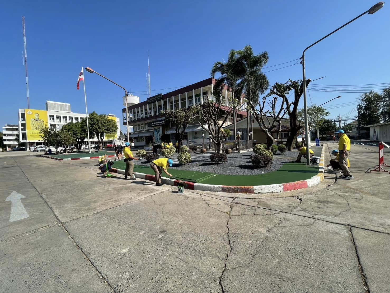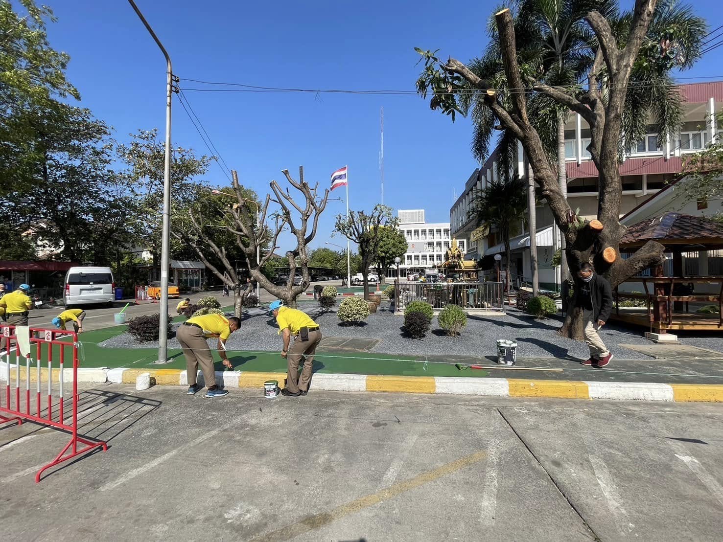 จัดกิจกรรมจิตอาสาพัฒนาทำความสะอาด กวาดพื้นถนน ฟุตบาท ทาสีเส้นขอบทางจราจร และฟุตบาทบริเวณลานหน้าสถานีตำรวจนครบาลบางชัน