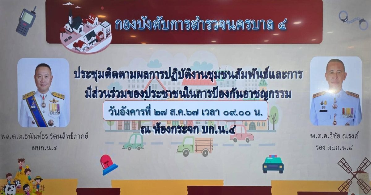 เข้าร่วมประชุมติดตามผลการปฏิบัติงานชุมชนสัมพันธ์ และการมีส่วนร่วมภาคประชาชน ในการป้องกันปราบปรามอาชญากรรม ณ ห้องกระจก บก.น.4