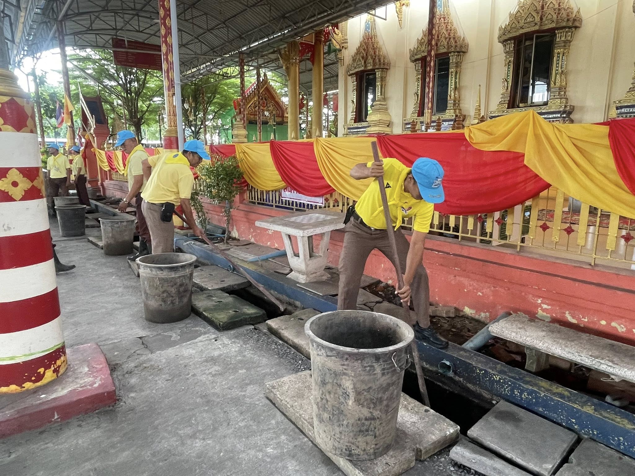 กิจกรรมประกอบด้วยรถน้ำทำความสะอาดพื้นที่โดยรอบ กวาดพื้นถนน ลานวัด ตัดแต่งกิ่งไม้ และกำจัดลูกน้ำยุงลาย